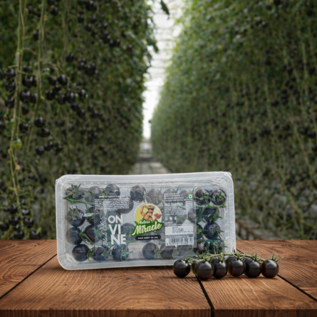 Nature’s Miracle Cherry Tomatoes on Vine are a unique and premium variety known for their striking deep colour, rich flavour, and naturally sweet profile. Grown on the vine and harvested at peak ripeness, these cherry tomatoes retain their full aroma, enhanced taste, and superior freshness.