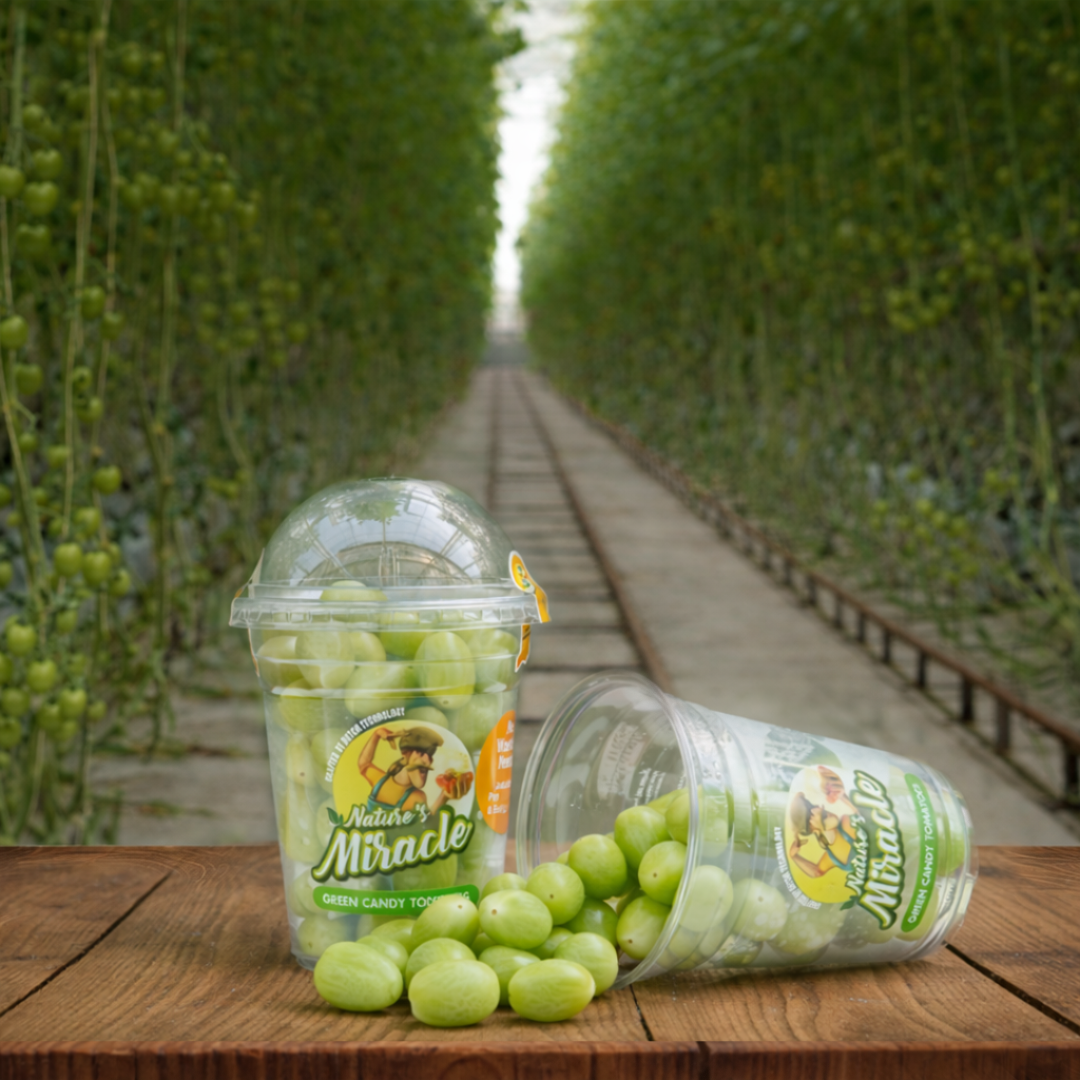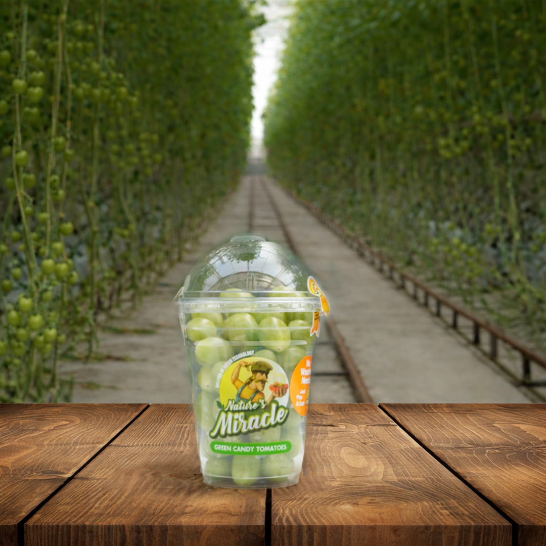 Discover the unique taste of Nature’s Miracle Green Candy Tomatoes — premium, bite-sized tomatoes known for their refreshing crunch and a subtle, natural sweetness. Crafted using advanced Dutch technology, these tomatoes offer a gourmet snacking experience straight from the cup. Perfect for kids, fitness lovers, and anyone looking for a healthy, flavorful treat on the go.