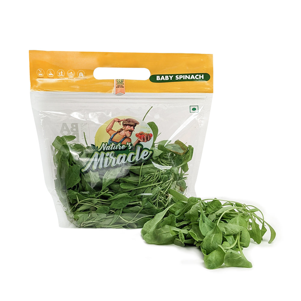 Fresh, crisp, and nutrient-packed – Nature’s Miracle Baby Spinach is cultivated using advanced hydroponic farming technology, ensuring purity, hygiene, and superior taste in every bite.