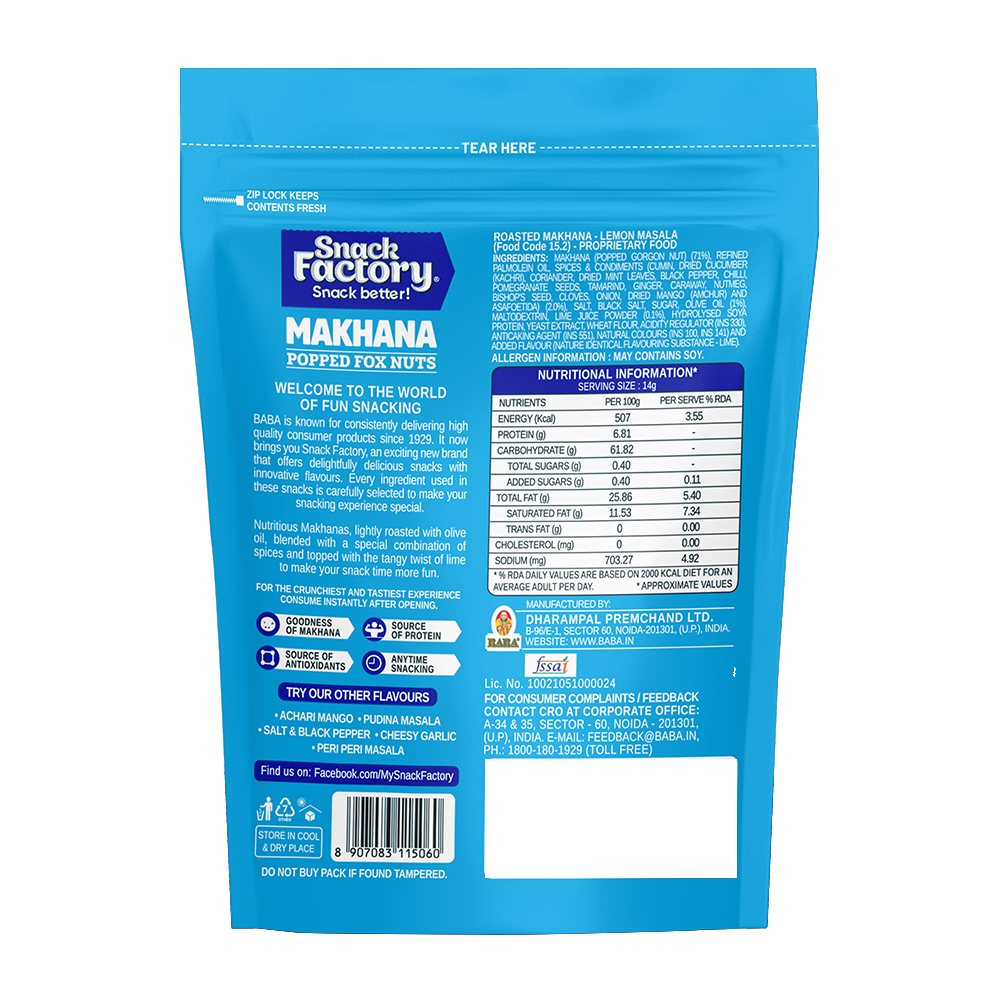 Snack Factory Makhana (Lemon Masala, 62gm)