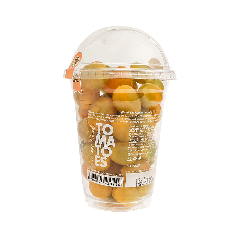 Discover our Orange Candy Tomatoes, a gourmet variety celebrated for their vibrant golden-orange color, exceptional sweetness, and smooth texture. Expertly selected and packed in an elegant container to preserve their freshness and flavor, they are as visually stunning as they are delicious.